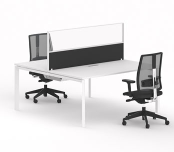 Les bureaux doubles Bureaubench disposent de cloisonnettes de séparation à 2 niveaux, la partie supérieure est en méthacrylate transparent tandis que la partie inférieure est revêtue de tissu, le tout donnant à l’ensemble du bureau double une allure épurée et raffinée.