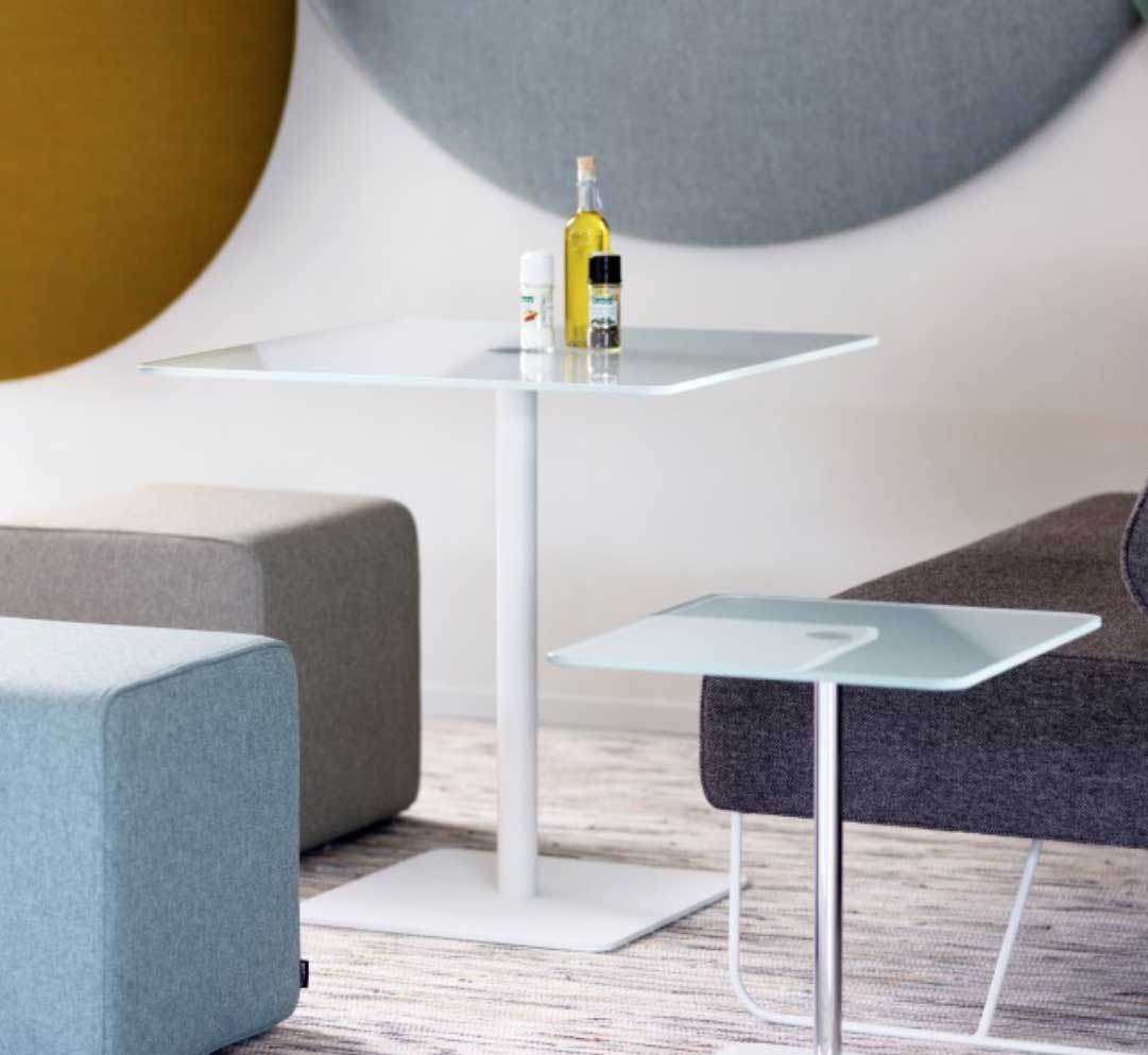 Le plateau des tables est composé de verre trempé transparent, satiné ou en HPL. La table basse carrée Flow s’harmonisera avec de nombreux mobilier, canapés et fauteuil dans des espaces restauration, des coins réunions ou es espaces détentes.