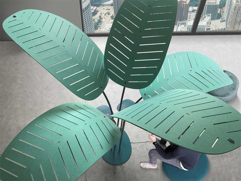 Créez une zone de confort et de convivialité grâce à l’îlot acoustique Oasis. A la fois objet décoratif et mobilier acoustique, ce objet iconique séduit dès le premier regard par son design atypique et attirant. Grâce à ses feuilles réalisées en feutre PET recyclé à 100%, l’îlot acoustique Oasis permet de diminuer sensiblement les nuisances sonores dans votre pièce.